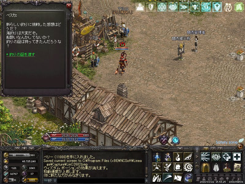 釣の証をグルーディン釣堀入口のNPCペスカに渡す.